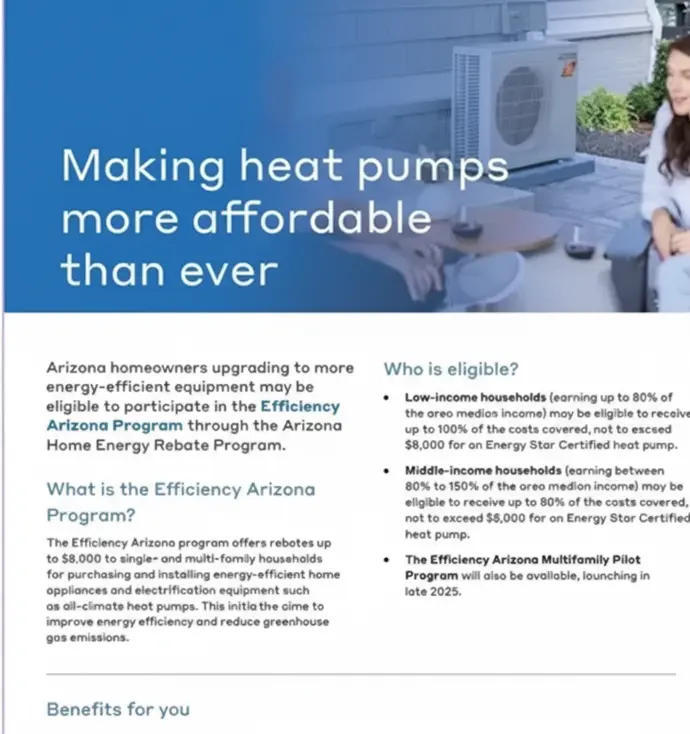 Our products will then recommend an Efficiency Arizona qualified contractor to assess your home to determine heat pump selection, provide a quote, and install the equipment.